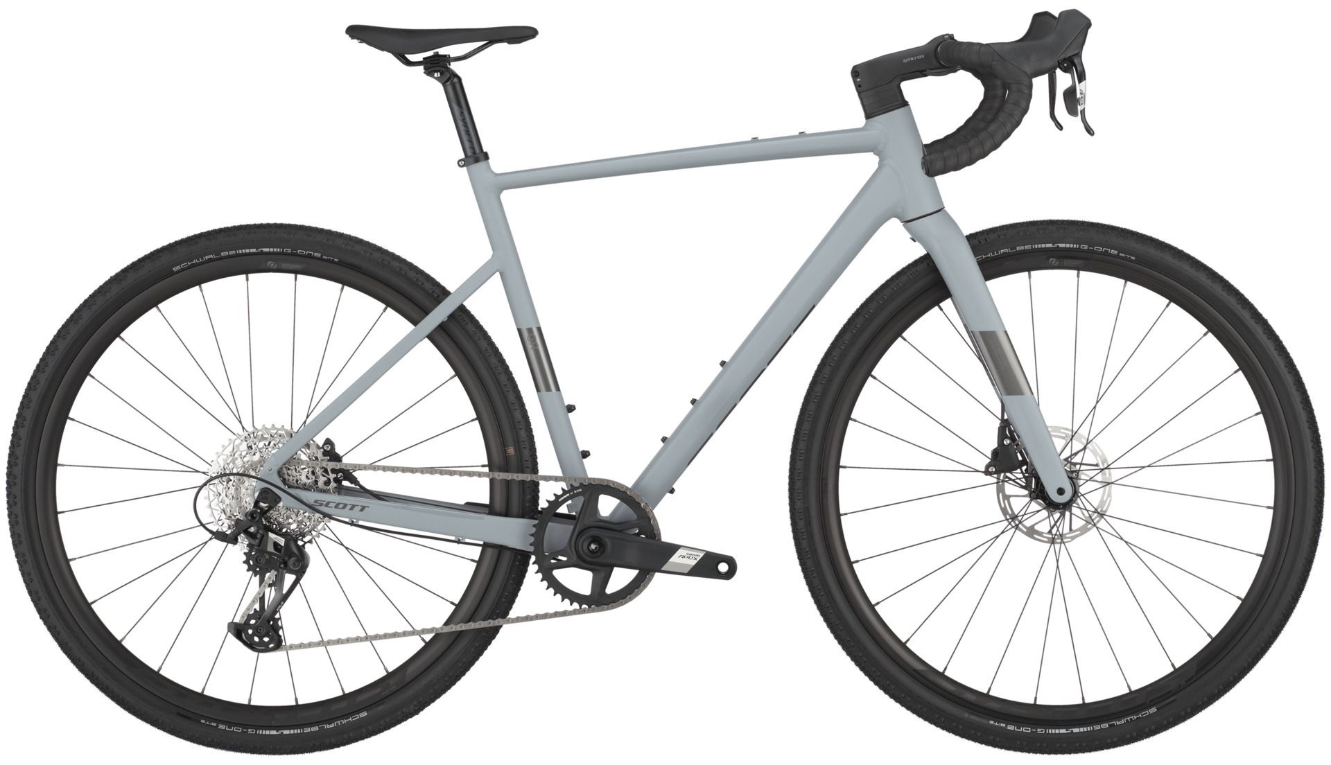 Scott Speedster Gravel 20 kommer i en stilren shark grey farve, der ikke kun ser godt ud men også er praktisk i forhold til at skjule snavs.